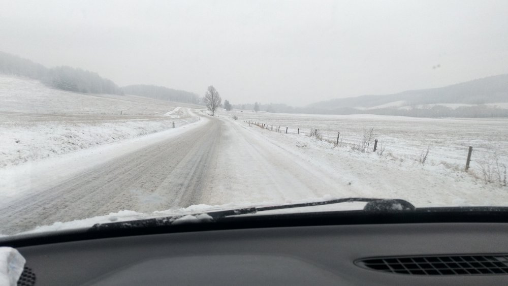 Včera ještě po suchu z Vysočiny, dneska od rána sype. Teď už tak 2x tolik co na fotkách a odpoledne to má teprve přijít pořádně.