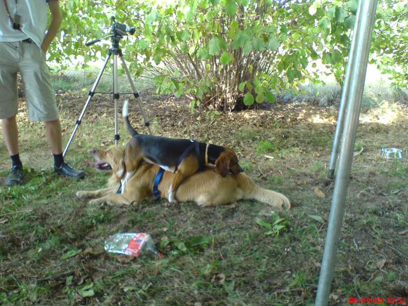 Jasně Maxík ten je k neutahání. Ještě jsme se nestačily ani rozkoukat a on už se podhrabal k sousedům za hárající fenou