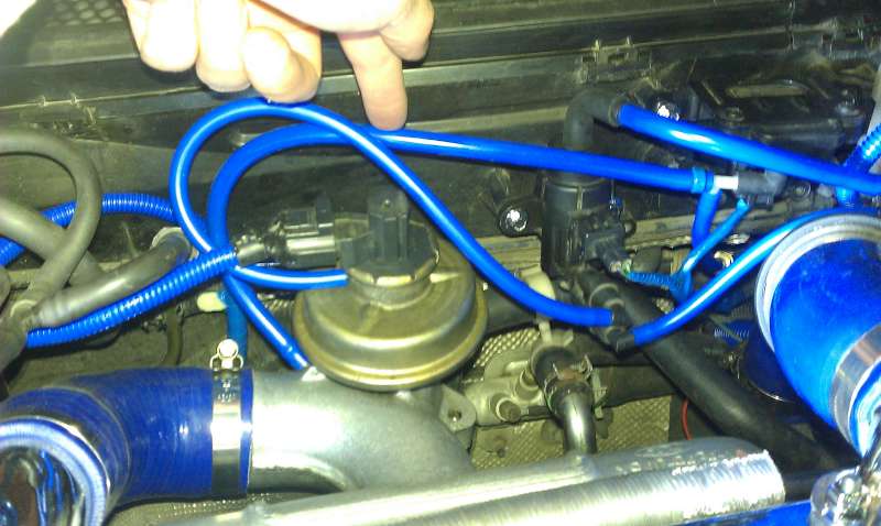 Tu je foto, T-cko som zapojil pred snimac tlaku, je to od hadicky, co ide spopod EGR ventilu na druhej foto: