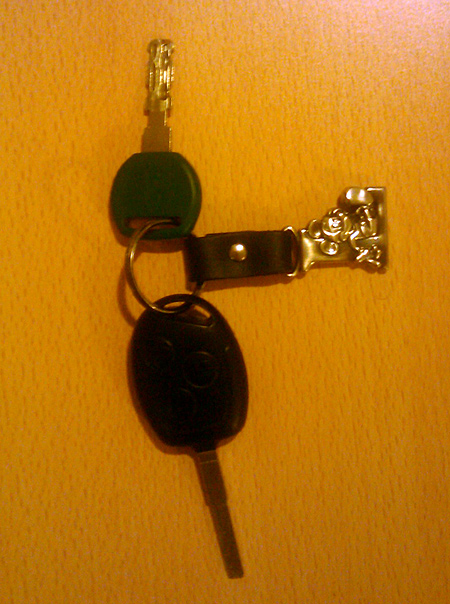 : lampička v barvě auta (stále totiž něco hledám a tak si musím svítit); karabinka (občas klíče připínám k jiným svazkům nebo na poutko).