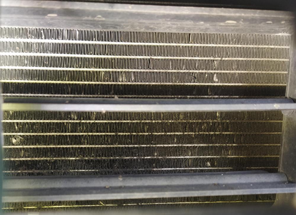 Kolega z práce, měl únik na klimatizaci přes saharu a abylo to znát i na tom chladiči. V místě úniku, bylo na chladiči mastné kolo. Jak je v okruhu s chladicím médiem, přítomen i olej.
