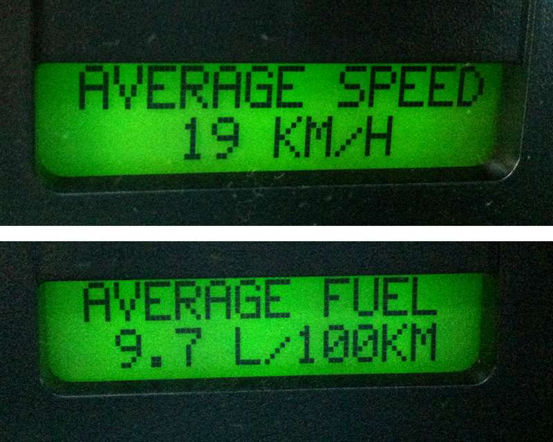 Jinak teda moje dnešní 20 km cesta do práce přes Prahu (mám rýmičku a chci bejt v teple). Pro srovnání - stroj značky Babetta dosahuje na stejné trase průměru 40 km/h a spotřebu to má asi 2.5 l/100 km