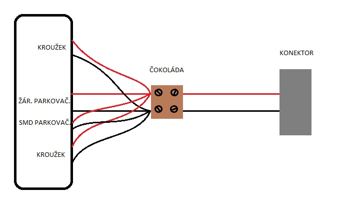 To já mam právě v plánu aby svítila jak diodová parkovačka, tak ta obyč, místo který dám diodovou. Co je čokoláda a jak říznout kabely nevim.