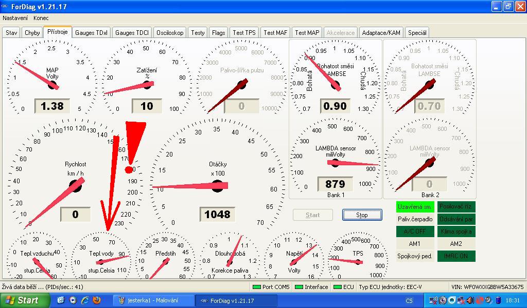 Ony ty otáčky co zůstávají viset se zvyšují s teplotou motoru. Ale zkusím oměřit to čidlo teploty motoru, má mít při 100´C odpor 1995 Ohmů. Připíchnu to na kabel, a až mi formidable ukáže necelých 100, sundám konektor a změřím ho. Poslední dobou jsem na to nějak neměl čas ani náladu z rodinných důvodů, nicméně se moje problémy vyřešily a teď už na to můžu zase vlítnout.