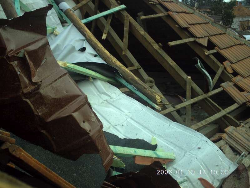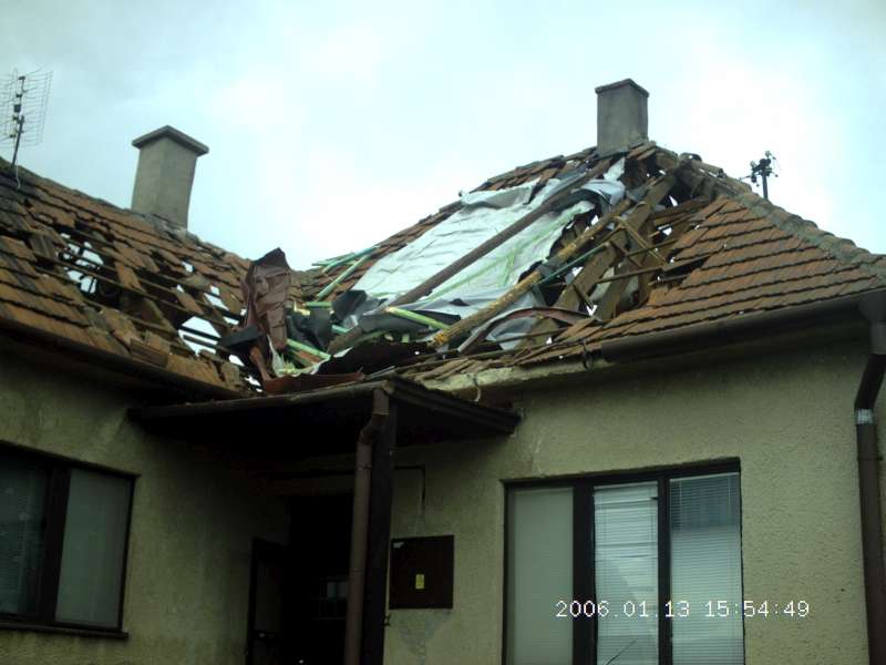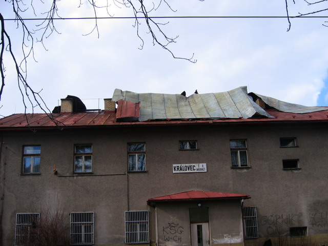 Tak sem se dnes dozvěděl, že jedna paní v HB koukala přes okno co se venku děje, na vedlejším baráku to komplet zozmlátilo střechu z těch azbestových čtverců, za boha si nevzpomenu jak se tomu nadává, jedna prolítla oknem a pani zoztrhla ruku až na kost, teď leží na JIP