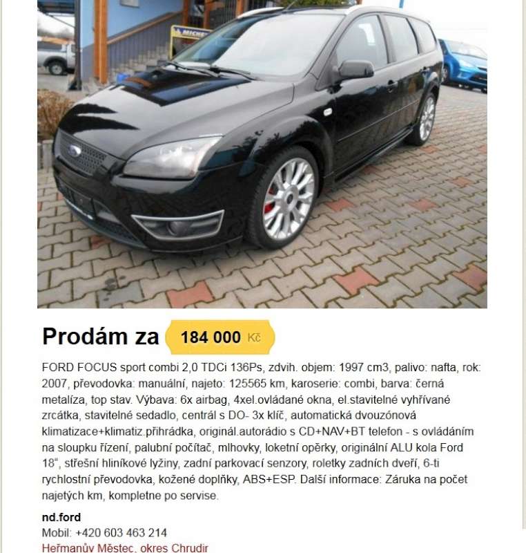 Jojo taky si vzpominam kdyz jsem asi pred 5 lety hledal auto a narazil na typicky nemecky taxik byli to passaty najeto do 150 tusim ze tenkrat mel asi 4 inzeraty a o cca 30 tis levnejsi nez byval prumer tak jsem sledoval a behem mesice postupne mizely z nabidky.