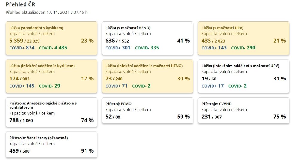 Pokud těm číslům nerozumíš tak Tvůj problém. Aktuálně máme vytížené nemocnice velmi podobně jako loni na podzim, jen letos tam neleží pacienti s covidem. Tím jsem chtěl naznačit, že nám tady pobíhají aktuálně virové onemocnění se závažnějšími průběhy než je aktuálně covid, jen se o tom nikde nemluví.ZaQik píše: 17.11.2021 08:01sam vidis, ze nemocnice PLNE nejsou, jaks psal vysepbjun píše: 17.11.2021 07:59 Boha... V laboratoři je každý vzorek od pacienta na covid oddělení označen jako COVID aby laborantka byla opatrná, tak jako se označuje HIV, žloutenka atd. Jinak obsazenost nemocnic zde https://onemocneni-aktualne.mzcr.cz/kap ... zkove-pece![]()
