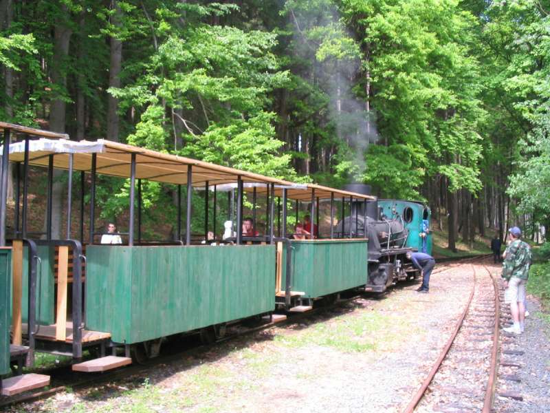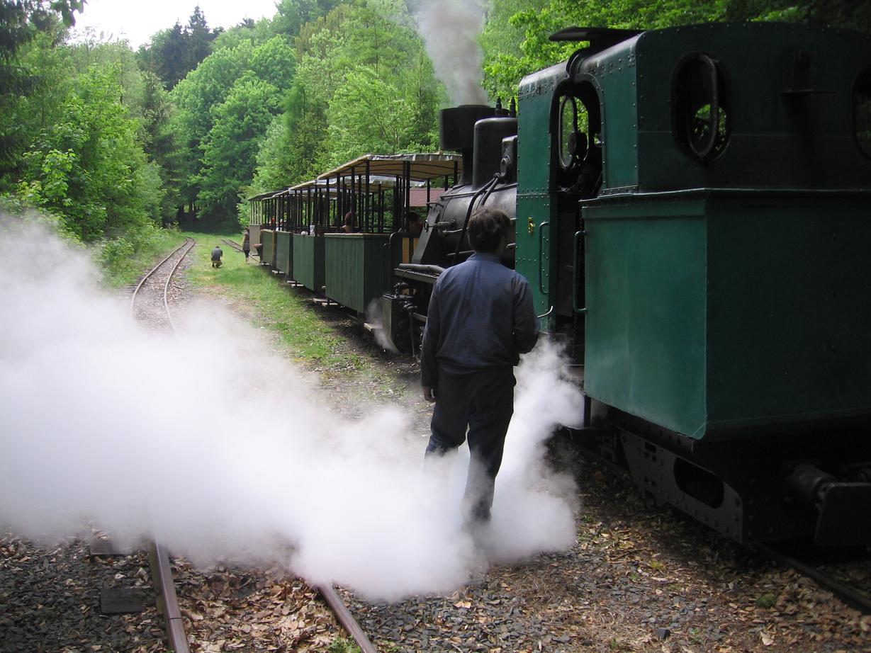 Samotná jízda po úzkorozchodné trati (rozchod 600 mm) byla romantickým zážitkem. Trať vede zčásti bionaftovými poli, zčásti lesem. Vagony jsou klimatizované svěžím lesním vzduchem, lehce aromatizované poctivým uhelným kouřem s příměsí výfukové páry. Průvodčí kaskadérsky přeskakují z vagonu na vagon i v plné rychlosti zdatného chodce místy postiženého běhavkou. Skubi ocenil okenní fólie s nulovou propustností, které však byly spolu s okny svinuty pod střechou vagonu.
