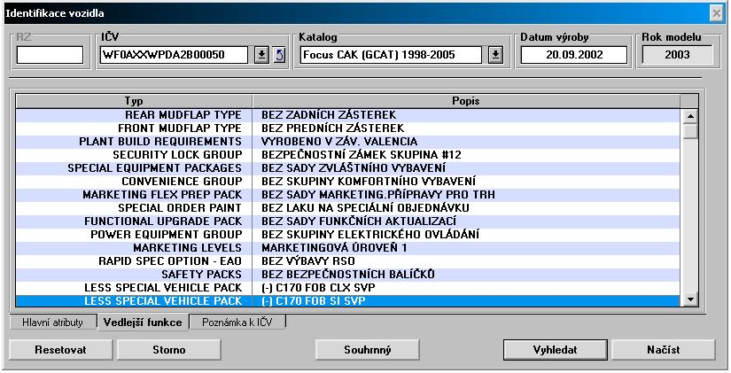 Dekódování VIN - čti důležité info str. 1, body 1 až 8 !