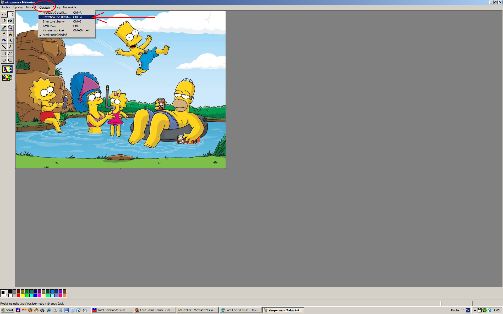 [2] pravym tlacitkem mysi klikneme na otevreny obrazek a vyberem z nabidky Obrazek - velikost obrazku [3] zadame pozadovanou velikost (150 pixelu) do jednoho policka, druhe nechame "svazane" s prvnim [4] zmackneme Skalovat