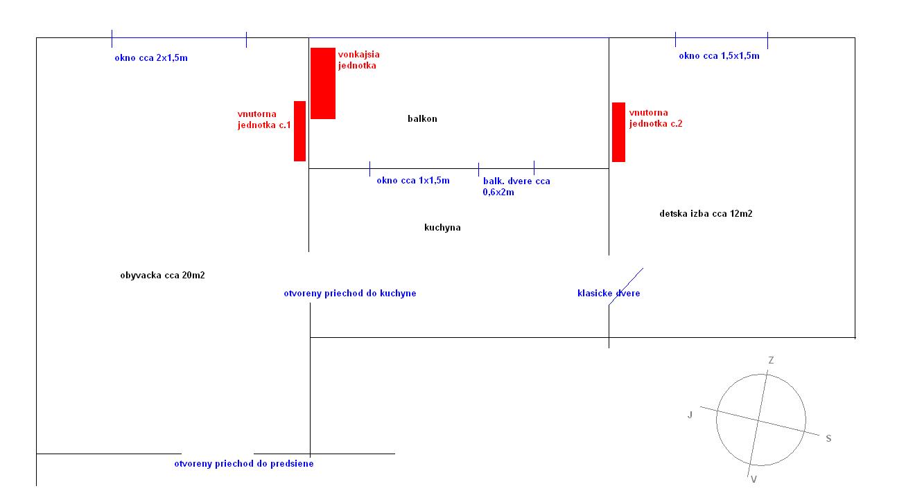 Caute, chcem si dat do bytu namontovat klimatizaciu. Malo by to byt zlozene z jednej externej jednotky a dvoch internych jednotiek.