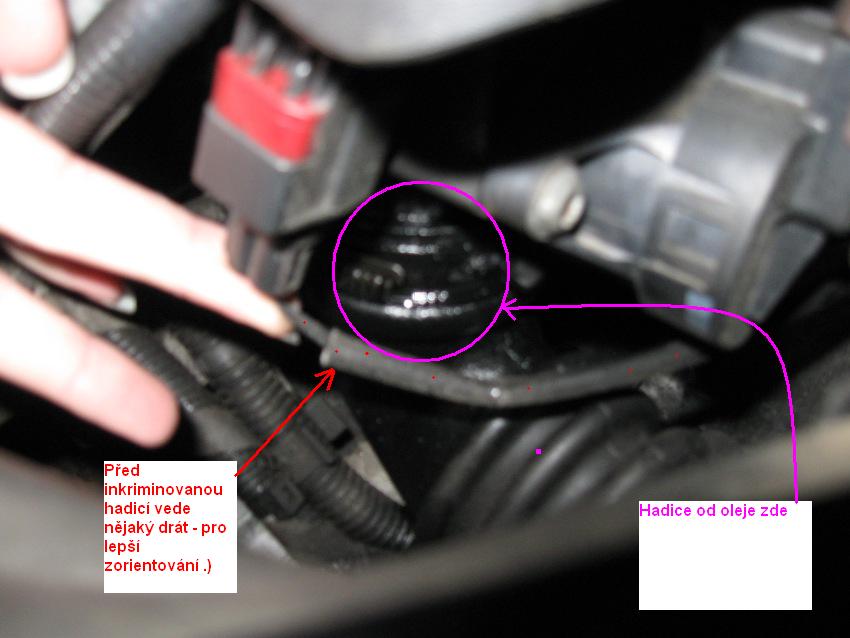 Tákže, jak je blok motoru, tak vlevo je taková tlustá hadica, je to úplně nahoře a nemusí se nic rozebírat, ani koukat někam hluboko do auta... A ta hadice je celá zapaplaná od oleje... Jak kdyby to tam prosakovalo odněkud. Stejně to budu muset vyfotit, protože chápu, že je to popis jako blázen.. Auto bylo v servise na výměnu oleje a dalších věcí a měli nakázané to zkontrolovat, ale asi na to zapoměli... Takže Focus Forum raď