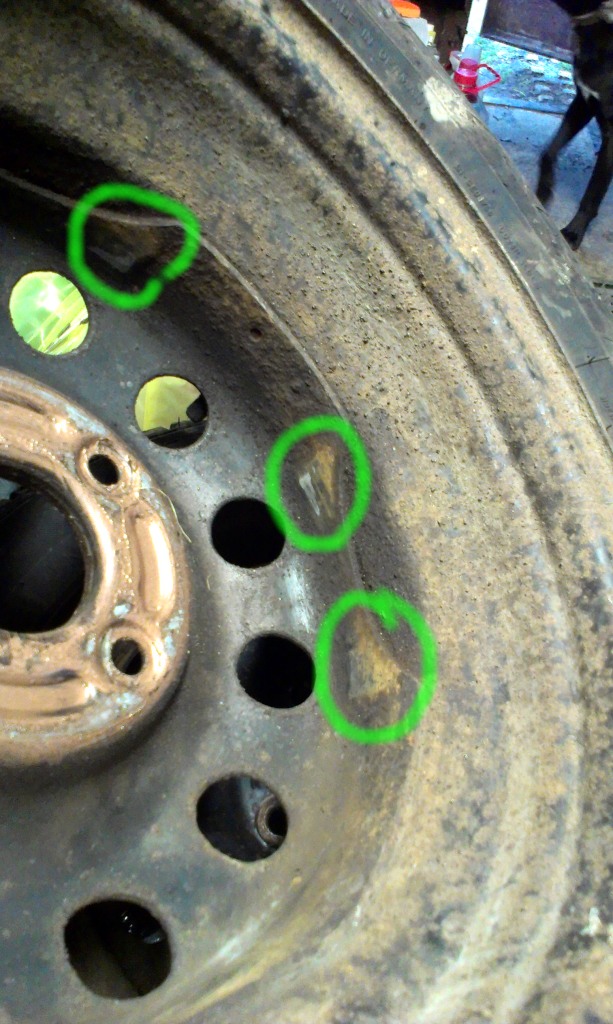 ET najdeš vyražený tuším poblíž děr pro šrouby kola z lícový strany.