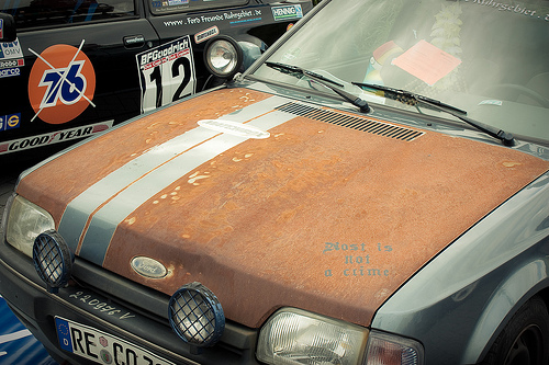 Kdo najdete nějakou fotku Forda v tomto provedení, šoupněte to sem :wink: . Co jsem koukal, tak ani ve světě si Forďáci na Rat look/Rust style moc nepotrpí, takže všechny fotky takto "postižených" modrých oválů jsou tu vítány :cooler: