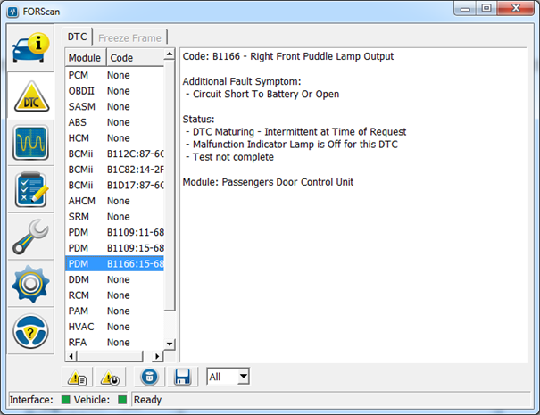 Výpis chyb z diagnostiky. DDM je OK, chyby jsou samozřejmě jen u PDM. Zkoušel jsem i restartovat modul PDM....