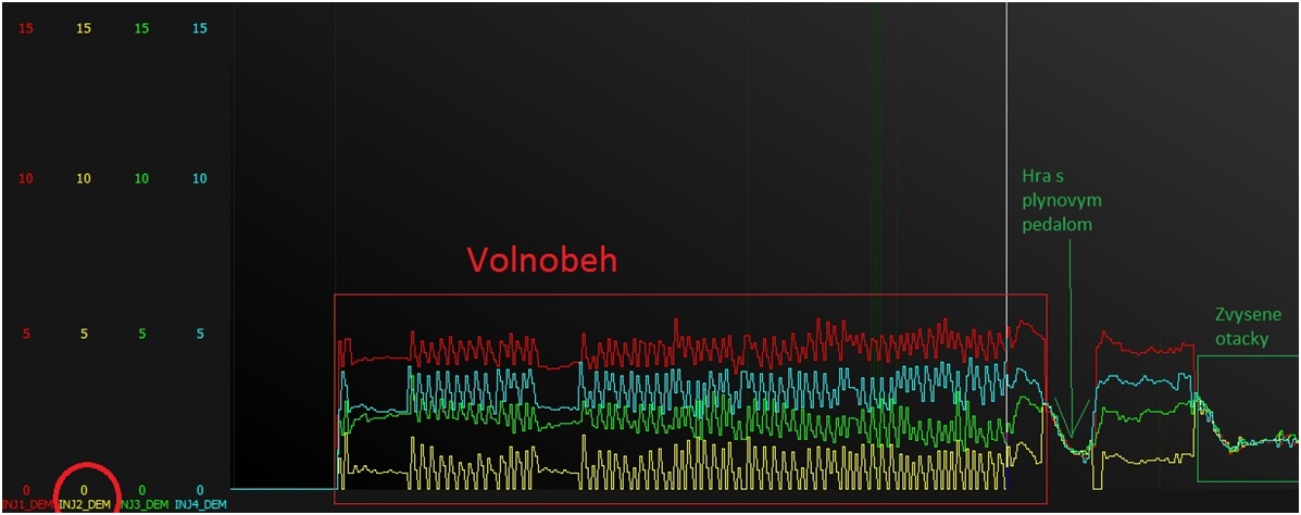- Fuel demand na druhom vstrekovaci boli take nizke az poziadavky klesli na 0, cize vobec tam ako keby nechcel palivo vstreknut.