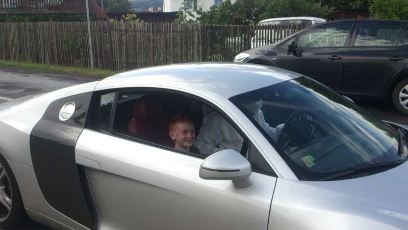 Tak helma i kombineza dorazily, malej bude hotovej. Sehnal jsem ke svezeni Audi R8. Řidiče do toho navliknu a až bude na dvoře, tak mu řeknu: někdo ti přijel popřát k narozeninám. Snad se to povede, dam sem pak fotky.