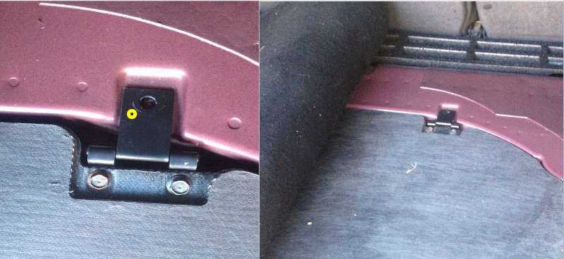 Zdravím páni, nejakým zázrakom sa mi podarilo utrhnúť skrutku držiacu pánt krytu priestoru s rezervou. Jazdil som s tým niekoľko rokov. Teraz to podrebujem opraviť, napadlo ma, môžem v tomto mieste mimo závit s utrhnutou skrutkou zavrtať napr. TEX-u? Pánt prevŕtam v tom žltom mieste (čo kreslím) a zatexujem napr 15mm skrutkou. Ide mi o tom, či nepoškodím niečo pod tým? Napr. nádrž?