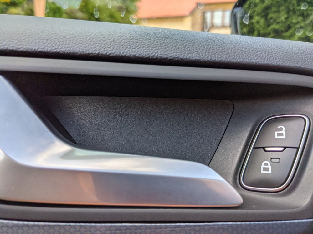 Na pravých dveřích na krytku zatlačím na jedné straně (u uchycení kliky) a na druhé to vyskočí. U řidiče ale ani za nic. Tlačím vší silou, krytka jde dovnitř, ale na druhém konci se ani nehne a nechce vyskočit ven. Zapáčit to nejde, protože tam není dost velká mezera na vložení nějakého páčidla.