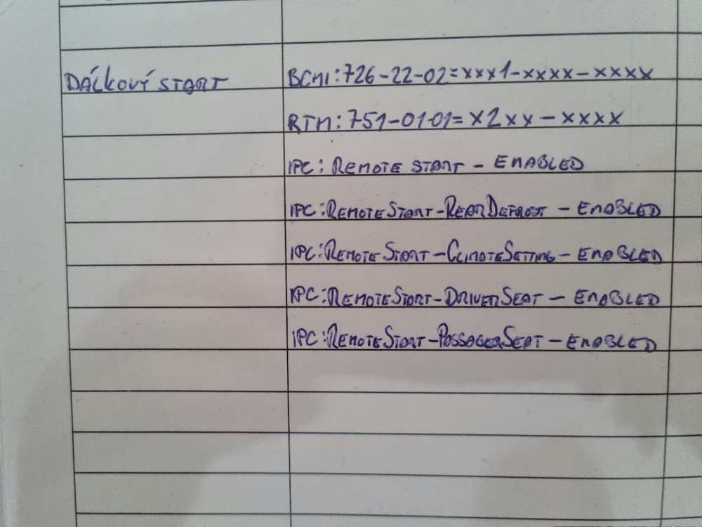 ta chyba mohla vzniknout az po pouzivani remote startu a ne hned po aktivaci ... povolils to i v BCM? ... odmazal bych chybu a obcas koukl, jestli se vraci