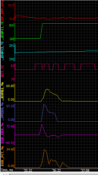 Co som odpozoroval, tak v momente, ked zacne stupat teplota za DPF (takze asi pumpuje a zohrieva naftu cez vaporizer), tak teplota na prvom cidle skoci na 800stupnov a napatie na nom padne na nulu. Toto drzi par sekund. Hodi chybu motora. Potom teplota za DPF zacne pomaly klesat a napatie na prvom cidle skokovo ide na spravnu hodnotu.