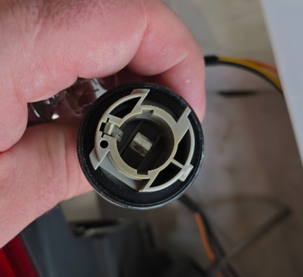 Dnes se mi rozsvítila kontrolka, že mi v autě nesvítí nějaká žárovka. Po prozkoumáni jsem zjistil, že se rozpadla jedna zadní patice žárovky P21W - chybí ji prostřední jazýček.